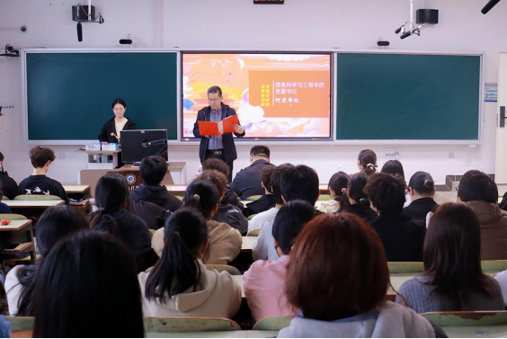 10月29日下午,信息科学与工程学院在A506教室组织开展示范性主题团日活动。校团委副书记夏添、信息科学与工程学院党委书记何宏及80余名团员代表参加。