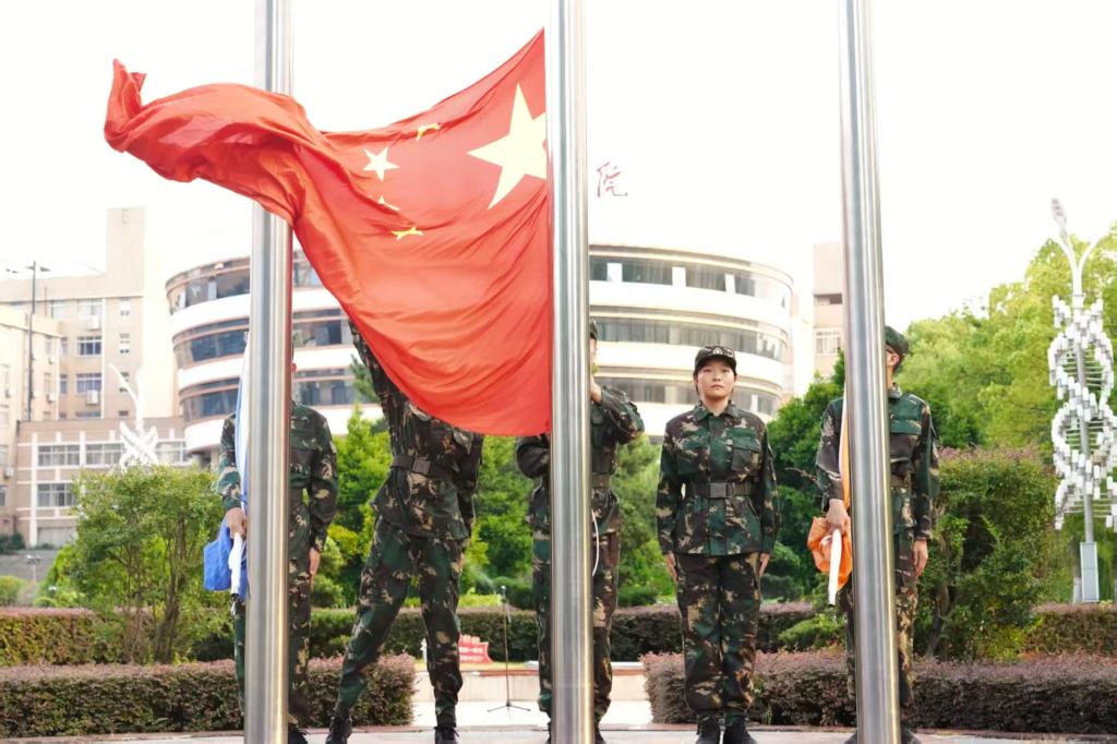 早上6:30,学校武装部组织第十九届军事技能教练员在知行广场举行升旗仪式。国旗护卫队队员迈着铿锵有力的步伐,护送五星红旗缓缓步入升旗台。伴随雄壮的国歌,鲜艳的五星红旗冉冉升起,全体师生肃立,高唱国歌,向国旗敬礼,一起追忆历史,坚定奋发图强的决心和斗志。