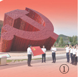 参观学习团队在南泥湾党徽广场重温入党誓词。祁小军 摄(人民视觉)