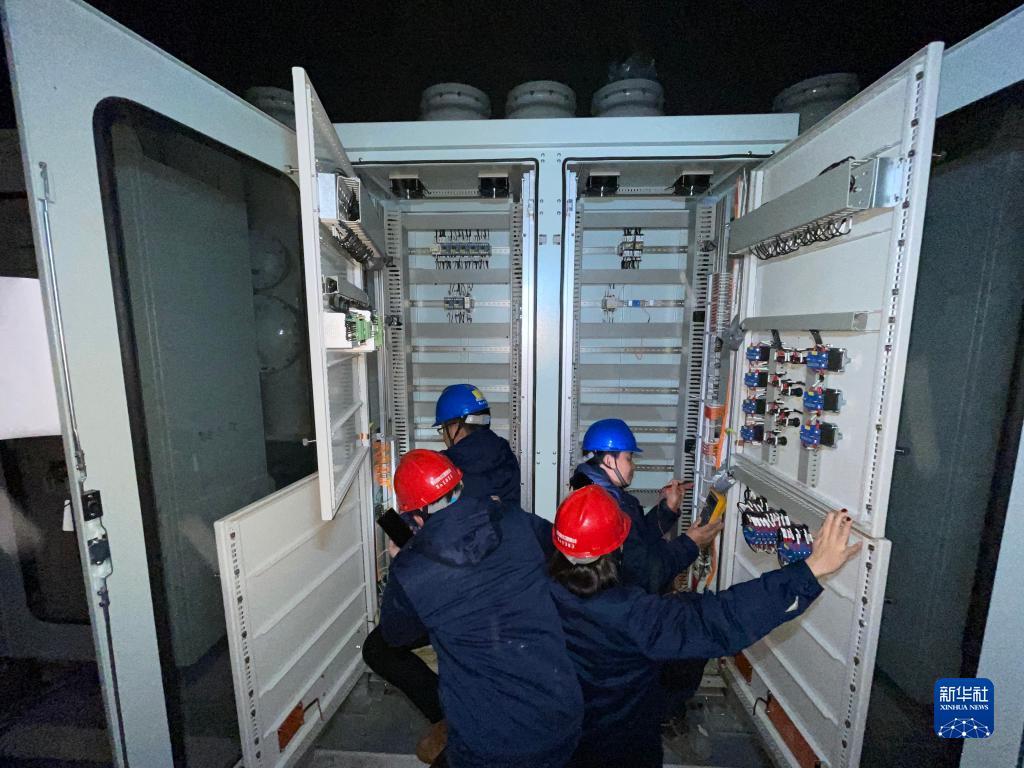 “韩舒技师创新工作室”团队在一处突发照明电源失电现场抢修(2月12日手机拍摄)。新华社发